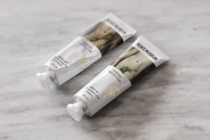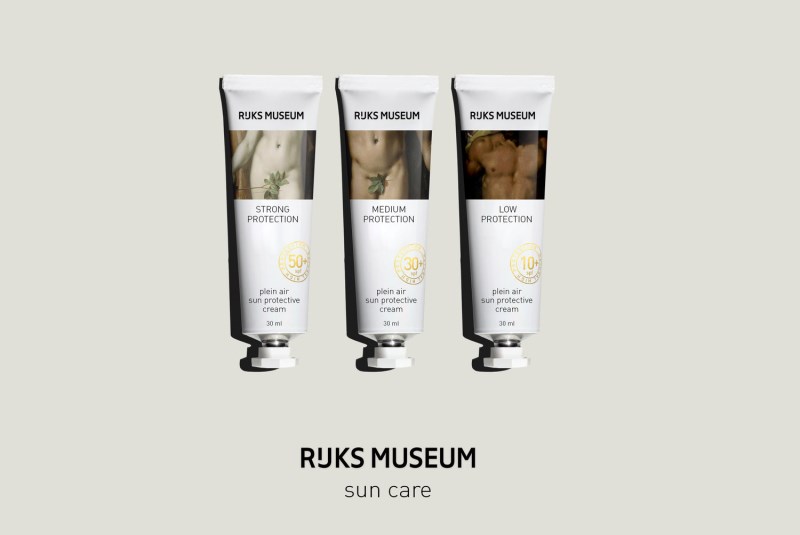 但有一句是顯而易見的事實:在同一幅畫中,的確存在各種不同的膚色。莫斯科設計師Stas Neretin 就巧妙地利用了這一點,從油畫中直接選取了三塊由深及淺的肉體設計成標簽,對應著由低到高的三級防曬指數(shù),就像下面這樣。