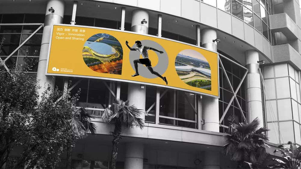“ao”與青奧的“奧”音節(jié)相同,契合了發(fā)揚(yáng)青奧品牌效應(yīng)的理念,同時與青奧體育公園的建造背景相呼應(yīng)。加注音調(diào)后,也可以理解為感嘆詞“噢”,體現(xiàn)出場館獨(dú)具特色的形象氛圍,以及觀眾對場館的驚嘆感受。同時,根據(jù)不同的場合和環(huán)境,對LOGO原造型的顏色和圖案進(jìn)行藝術(shù)處理,形成獨(dú)有特色的造型“語言”圖案,使之更加生動。