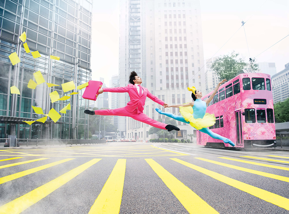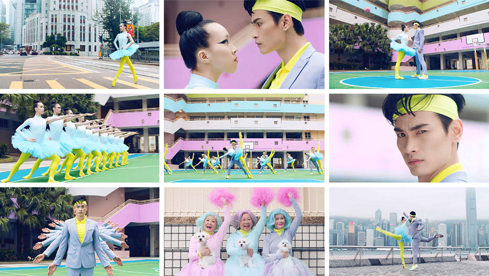 沒有任何言語,兩分多鐘的短片僅有音樂與舞者優(yōu)美律動,Pum Lefebure解釋即便少了語言聲音,但觀賞者能夠從舞者的身體、四肢擺動,甚至臉部表情來發(fā)想一段快樂的故事,搶眼的螢光綠、粉紅與冰藍色,搭配從彩虹籃球場、維多利亞港到傳統(tǒng)宴會廳等香港新舊交錯的街景,很快便能擄獲觀者的心。當然,除了舞者們精湛舞蹈技藝外,擔任配樂的波麗露舞曲,從經(jīng)典到加入嘻哈節(jié)奏的新編曲,也巧妙地讓整體編排上更有層次。