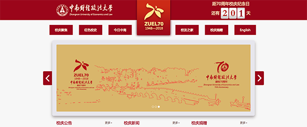 中南財(cái)經(jīng)政法大學(xué)是中華人民共和國(guó)教育部直屬的一所以經(jīng)濟(jì)學(xué)、法學(xué)、管理學(xué)為主干,兼有哲學(xué)、文學(xué)、史學(xué)、理學(xué)、工學(xué)、藝術(shù)學(xué)等九大學(xué)科門類的普通高等學(xué)校,是國(guó)家“211工程”高校和“985工程優(yōu)勢(shì)學(xué)科創(chuàng)新平臺(tái)”項(xiàng)目重點(diǎn)建設(shè)高校,入選世界一流大學(xué)和一流學(xué)科(簡(jiǎn)稱“雙一流”)建設(shè)高校及建設(shè)學(xué)科名單。學(xué),F(xiàn)有兩個(gè)校區(qū),南湖校區(qū)位于風(fēng)景秀麗的南湖水畔,首義校區(qū)位于歷史悠久的黃鶴樓下。時(shí)光的流轉(zhuǎn)中,中南財(cái)經(jīng)政法大學(xué)將于2018年迎來(lái)她的70周年華誕。極地視覺(jué)設(shè)計(jì)形象升級(jí)