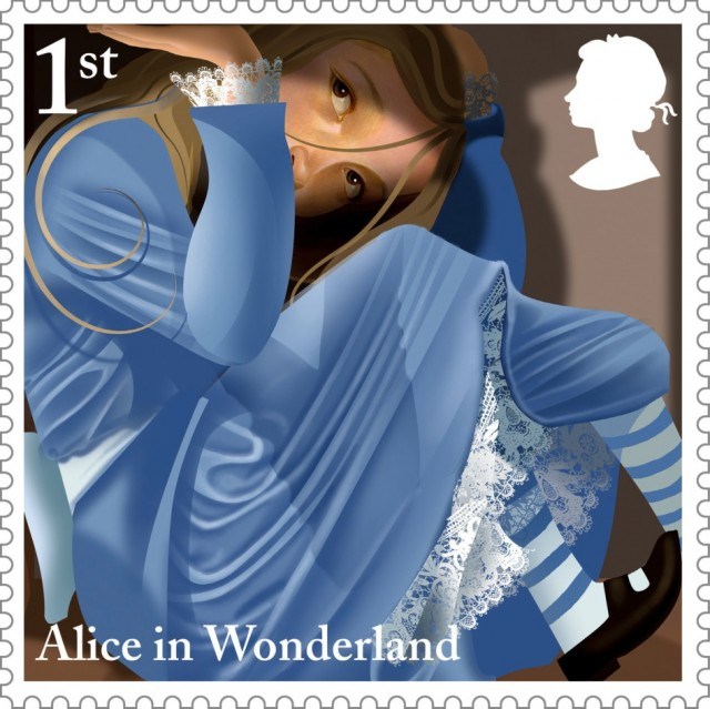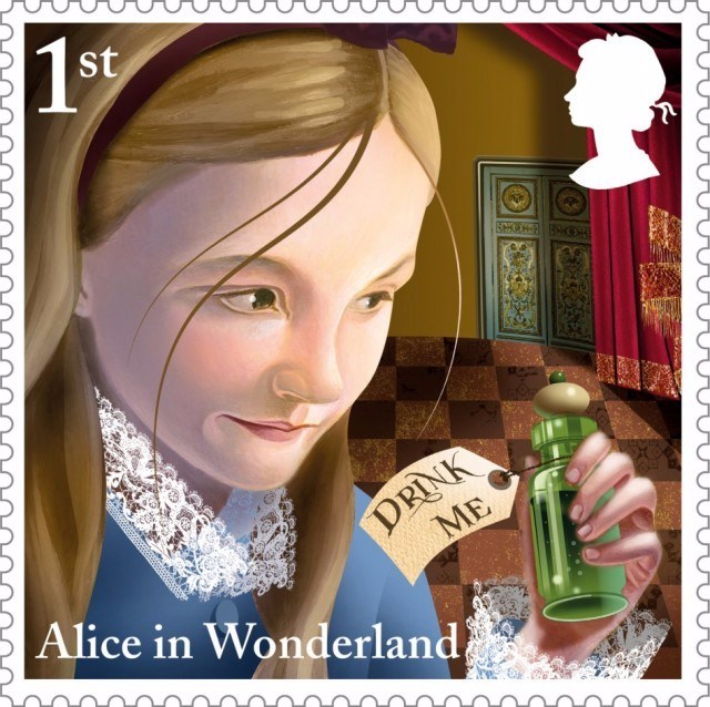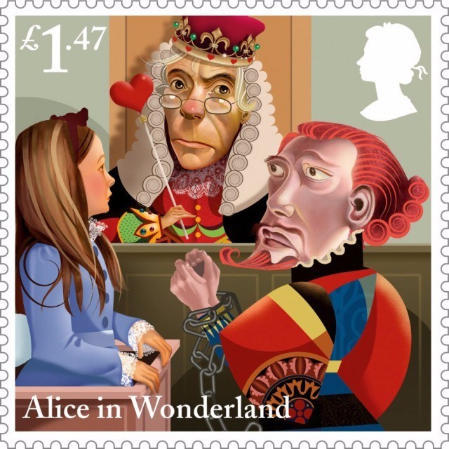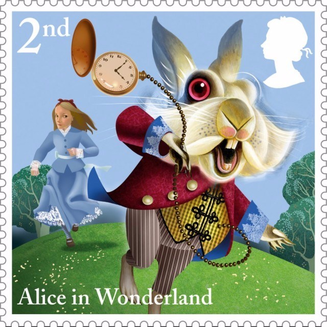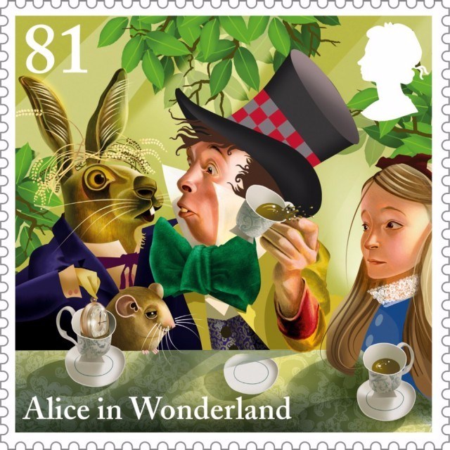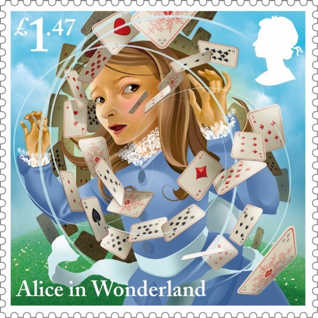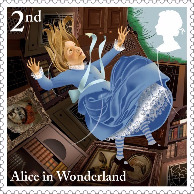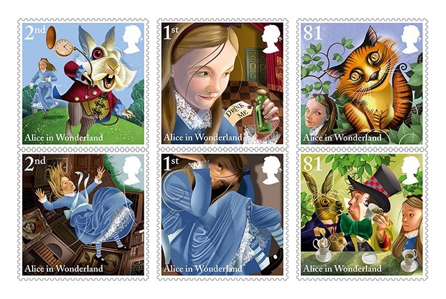 為慶祝英國作家劉易斯·卡羅爾(Lewis Caroll)的童話出版150周年,英國皇家郵政與著名插畫家Grahame Baker-Smith合作,圍繞著《愛麗絲夢游仙境》中的主要角色(如愛麗絲、白兔先生等)和經(jīng)典場景,繪制了10幅郵票。蘇州插畫設計