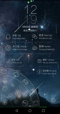 《特效星空》這個(gè)手機(jī)鎖屏設(shè)計(jì),深邃的夜空, 星漢燦爛,給人無邊無際的遐想和視覺沖擊。通過主題開發(fā)工具,設(shè)計(jì)師做出了十種星空壁紙隨機(jī)切換,感受不同星空的情景帶來的不同美的體驗(yàn)。