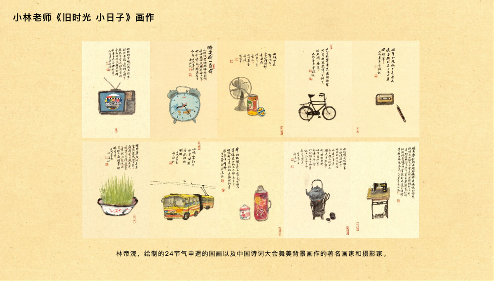 他們特意挑選5張畫作做成長軸的形式,通過動(dòng)效和聲效的手法還原舊物品, 將記憶中的小雞鬧鐘、風(fēng)扇、電視機(jī)、自行車、磁帶等形象展現(xiàn)在用戶眼前。