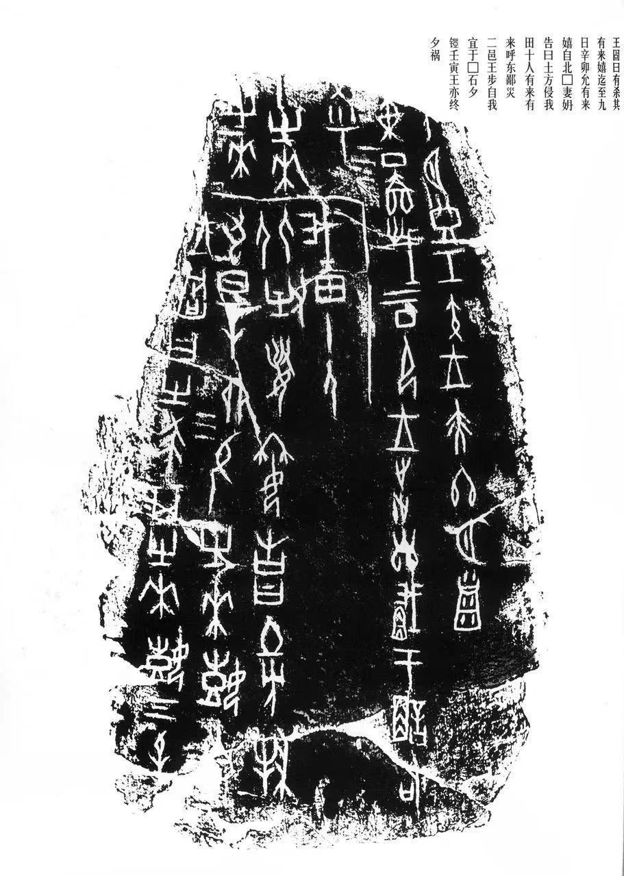 石鼓文世稱“石刻之祖”,是我國最早的石刻文字。因因其刻于十座形似鼓的花崗石上,故稱為“石鼓文”。石鼓文是集大篆之成,開小篆之先河,在書法史上起著承前啟后的作用,是由大篆向小篆演變而又尚未定型的過渡性字體。