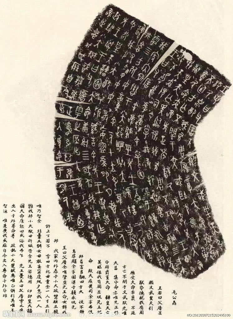金文是指鑄刻在殷周青銅器上的銘文。因?yàn)檫@類銅器以鐘鼎上的字?jǐn)?shù)最多,所以又叫作“鐘鼎文”。周以前把銅也叫金,所以銅器上的銘文就叫作“金文”。由于青銅器大部分為范鑄,先在范上刻字,然后加工美化,所以金文筆道肥粗,圓筆多而方筆少,彎筆多,團(tuán)塊多,字體平易古樸,筆畫方圓兼?zhèn),具有凝練平直之氣。金文的行文程式逐漸固定工整,筆畫規(guī)范整齊,合文不多!按笥鄱Α薄懊Α薄安浩洹钡茹懳亩际墙鹞牡慕(jīng)典之作 。