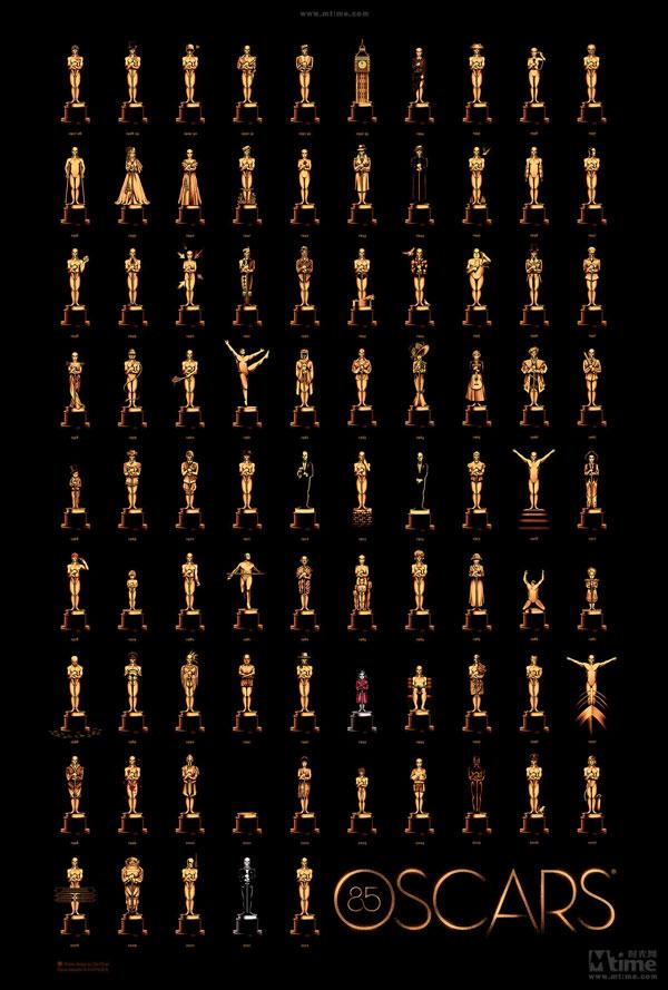 就算你是個(gè)瞧不上奧斯卡學(xué)院獎(jiǎng)的人,你也會(huì)愛死畫家奧利·摩斯為第85屆奧斯卡設(shè)計(jì)的官方海報(bào)的。盡管早前就有很多人為奧斯卡最佳影片做過藝術(shù)海報(bào)的設(shè)計(jì),但奧利·摩斯用一張海報(bào)涵蓋了85年來所有人的工作,這張海報(bào)上的85座小金人分別代表85年來的學(xué)院獎(jiǎng)最佳影片,奧利·摩斯用極端簡約的元素,雕刻了每一年奧斯卡時(shí)光,和那些最佳影片。