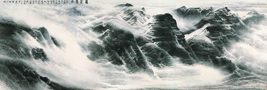 上圖為許欽松的《嶺云帶雨》圖