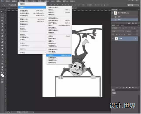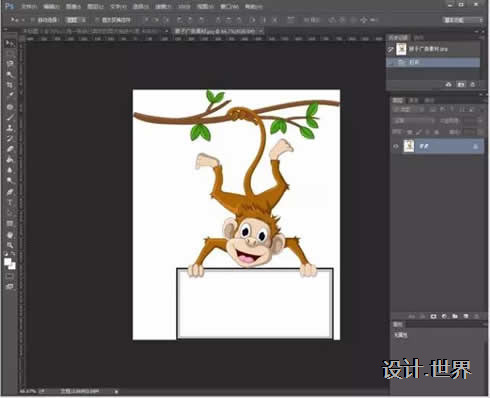 1、選一張小伙伴們喜歡的圖片簡單粗暴的拖進PS里設(shè)計,因為今年是猴年嘛,所以我就選擇了一張萌萌噠猴子的圖片啦啦啦~