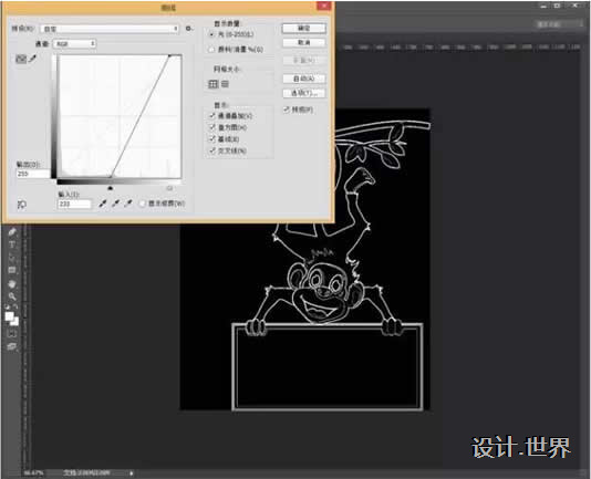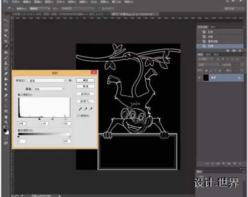 5.點擊:圖像—調(diào)整—色階,或者使用快捷鍵ctrl+l。這個操作的目的是讓主體看起來更清晰和減少一些不必要的細小的線條。這個根據(jù)個人喜歡的圖片效果來調(diào)整啦。