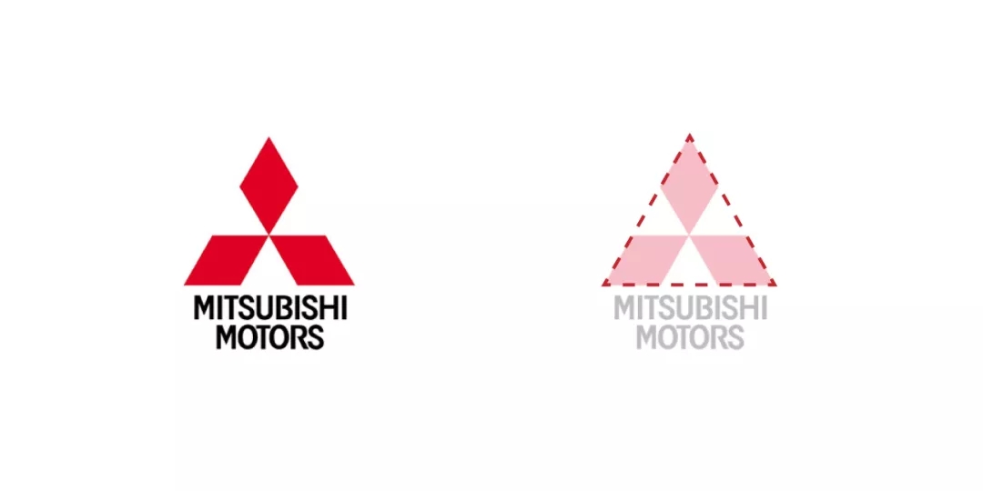 三菱LOGO內(nèi)部三個(gè)尖銳圖形菱形結(jié)合外輪廓三角形的構(gòu)成方式。具有非常強(qiáng)烈的主宰氛圍,對(duì)稱式的處理具有穩(wěn)定性,正符合所屬的汽車行業(yè)追求的穩(wěn)定感和速度感。