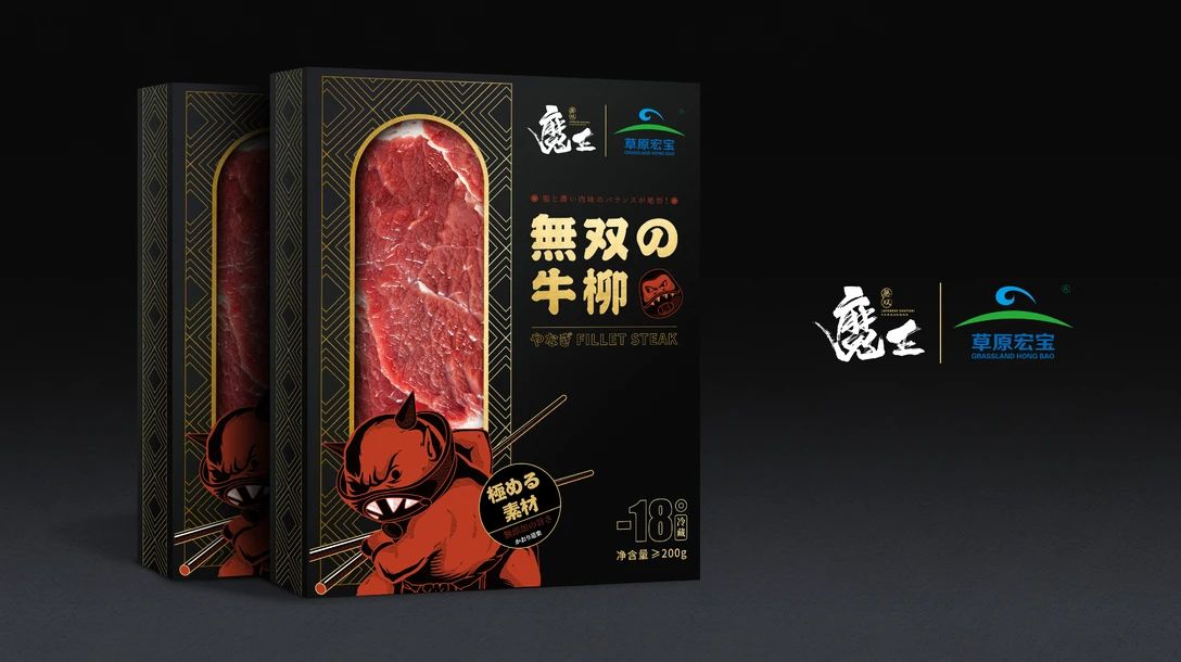 這個叫魔王無雙的日料品牌,進行了品牌升級,這次的升級部分是VI和空間,VI部分主要是圍繞IP插畫展開。因為品牌名叫魔王無雙,所以在打造符合品牌名的IP時,就塑造了魔王這一個IP形象,一提起魔王,大家就會率先想到牛魔王,所以IP形象實際上是借用了牛魔王這一眾多周知的經(jīng)典形象。通體棕紅的魔王身著日本相撲出場時所穿的兜擋布,日料的氣息一下子就出來了。只不過魔王身上的是鎧甲兜擋布,和面具和牛角一致,面具上所畫的表情有點齜牙咧嘴,看起來不好惹的樣子,魔王的眉眼皺在一起,眼神堅定,加上手里拿著武器,很像要挑戰(zhàn)別人,還堅信自己會贏的武士。但魔王又是日料廚師,做著烤肉加料理的動作,兇颯的表情也變得憨了起來。而由于是日料品牌,品牌設計上也采用了很多日本的元素。如浮世繪風格的海浪,超大顏色鮮明的字帖、漫畫版式宣傳畫報等等。整體搭配很有日式漫畫的特點,IP形象搭配不同的食材做出不同的表情動作,非常豐滿立體,這樣的宣傳畫報也能在第一瞬間吸引人的注意,從而為門店帶來更多的消費者。海報設計采取左右分布法則,左邊為字體部分,右邊為插畫部分。字體部分橫版分布,通過加粗突出品牌的經(jīng)營優(yōu)勢,插畫部分是一只被拆解的魚,又通過魔王、海浪、火山等元素形成一只不那么貼緊的魚,趣味性不足。