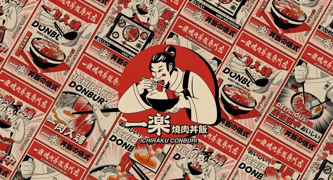 這個日料的品牌風格與大眾小清新不同,參考了日本街道文化熱鬧的沖擊。插畫的靈感是來自于吃燒肉丼飯時的步驟,背景是放射線線條來創(chuàng)造炸裂的效果。顏色上的漸變,有著很強的節(jié)奏感,兩者搭配,就是這種日式熱血復古設計。強烈的顏色反差,具有力量感的字體,給年輕消費者營造出元氣滿滿、熱血的氛圍,每一個細節(jié)綜合起來達到最大化效果。許多的日本料理餐廳,都喜歡原木的和風設計,更能抓住地道的日式風格,但這家日料的品牌VI設計,卻看中了日本街道文化,參照街道繁雜熱鬧時對人的沖擊心理,將動漫中熱血的氣氛,用反差色的對比、炸裂的畫感來表現(xiàn),給餐廳增添不一樣的用餐體驗。相信不少的人都看過日本動漫,劇情的設定、畫面的設計都是非常熱血沸騰,讓人看了有種心潮澎湃的感覺,這點可以進行參考,以中國的人物角色為主,同樣可以設計出這種風格。