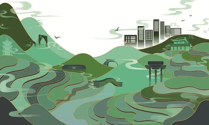 據(jù)官方釋義,LOGO圖形融合了定西城市特色的梯田、定西市博物館和王莽權(quán)衡雕塑、特色山脈元素。而這些LOGO圖形元素組成了“定”和“西”兩個(gè)字。LOGO除了代表健康,環(huán)保的綠色,還有紅色版本的呈現(xiàn)形式。另外還同時(shí)發(fā)布了一系列的主題插畫,其中以下這幅以綠色為主色調(diào)。畫面結(jié)合了梯田、山川河流以及王莽權(quán)衡雕等豐富的元素來呈現(xiàn)城市之美。