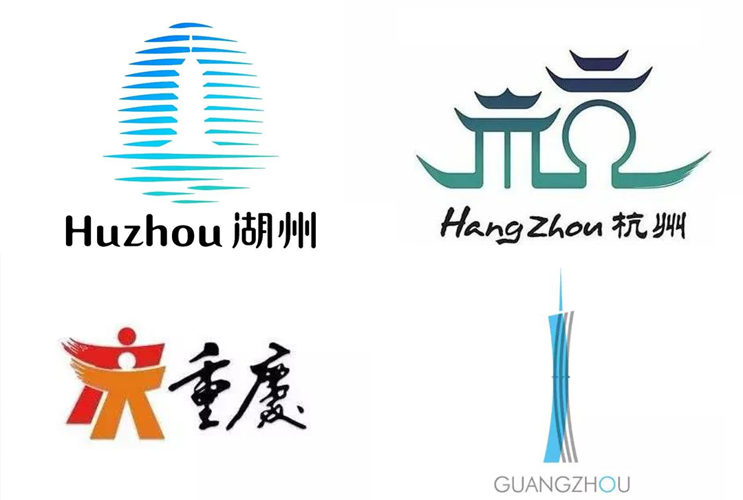 我第一個(gè)感覺就是視覺上想要傳遞的信息太!多!了!插畫設(shè)計(jì)結(jié)合各種元素呈現(xiàn)畫面這個(gè)操作還算是合理的,但是——LOGO設(shè)計(jì)給人的感覺就是拼湊元素式地匯聚城市特色。這繪制的節(jié)奏就像是先來個(gè)具城市特色的梯田和山脈,再把建筑特色添上,最后加上些鳥來豐富一下,完事!整個(gè)設(shè)計(jì)傳達(dá)的信息太多,給人一種“眼花繚亂”的感覺,這樣反而讓人毫無印象,記不住。所以,在LOGO的設(shè)計(jì)上以簡(jiǎn)化的形式去呈現(xiàn)城市特色反而更直觀明了。像湖州城市LOGO,以剪影的形式結(jié)合了現(xiàn)代化地標(biāo)“月亮酒店”,傳統(tǒng)標(biāo)志性建筑“飛英塔”及太湖三大元素。LOGO通過采用統(tǒng)一的線條描繪風(fēng),使這些元素形成一個(gè)整體視覺上傳遞了城市文化,又不失簡(jiǎn)潔大氣。杭州城市LOGO,以漢字“杭”的篆書進(jìn)行演變,融合航船、城郭、建筑、拱橋等元素,以“字+圖形”結(jié)合的形式,達(dá)到了簡(jiǎn)化。重慶城市LOGO,采用了“人”為主要視覺元素,雙人組成了一個(gè)“慶”字,并且“人人重慶”如今也成為了城市形象標(biāo)志。還有廣州城市LOGO,直接運(yùn)用具地標(biāo)性建筑廣州塔融合“州”字設(shè)計(jì)?梢钥吹揭陨线@幾個(gè)城市LOGO雖然看起來很簡(jiǎn)潔,但是傳達(dá)的城市文化含義厚重。