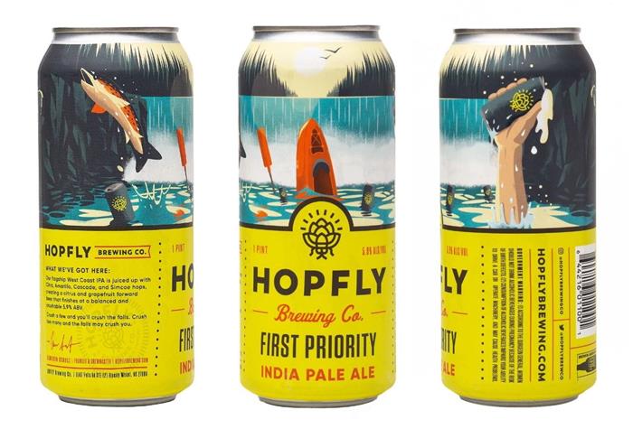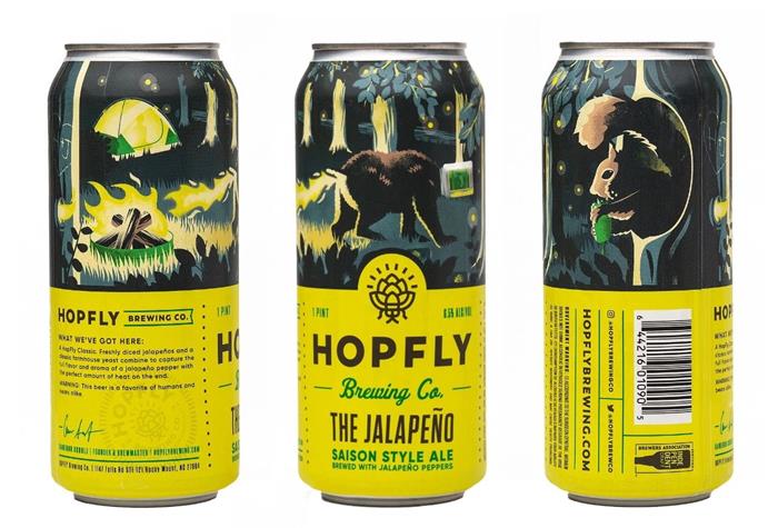 同樣是啤酒,來自北卡羅來納州的啤酒廠的品牌Hopfly,體現(xiàn)的不是詩意,而是通過插畫來表現(xiàn)南方的冒險(xiǎn)精神。
