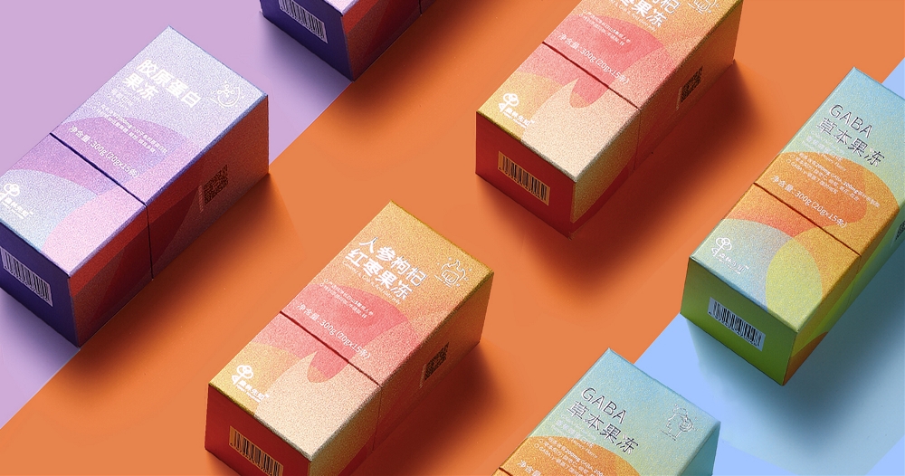 包裝設(shè)計(jì)從產(chǎn)品品名中提煉出設(shè)計(jì)關(guān)鍵詞,根據(jù)不同口味提取出相應(yīng)亮眼的漸變色。設(shè)計(jì)圖案根據(jù)產(chǎn)品原料進(jìn)行抽象化處理,以充滿紋理感的形式,表現(xiàn)出品牌幫助消費(fèi)者追求健康高品質(zhì)生活的態(tài)度。