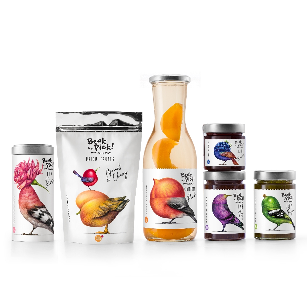 在西方,果醬是人們最喜愛(ài)的食物之一,但其高糖分卻使很多人的健康亮起了紅燈。為了傳達(dá)給消費(fèi)者少食多餐,減少消化負(fù)擔(dān)的健康飲食理念,設(shè)計(jì)團(tuán)隊(duì)創(chuàng)意性地將這款果醬與少量進(jìn)食的鳥(niǎo)類結(jié)合。