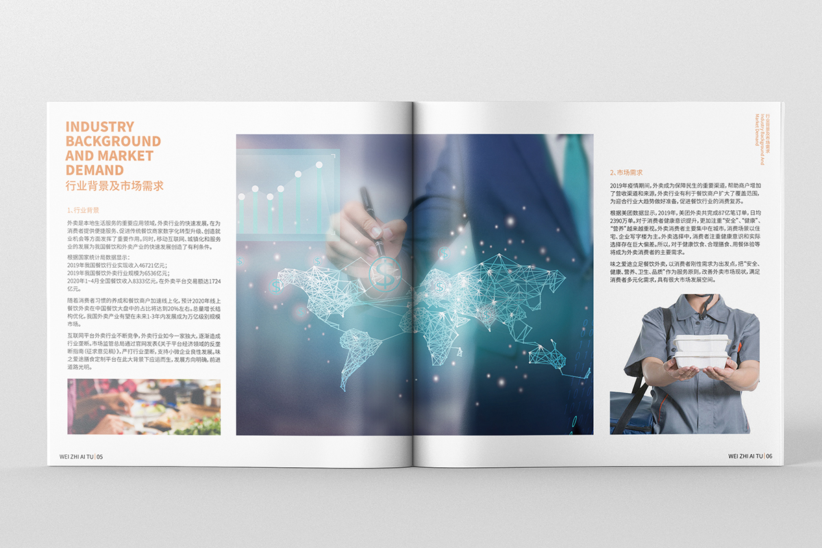 本案例是為餐飲平臺的招商宣傳冊設(shè)計。品牌理念主打“安全、健康、新鮮、營養(yǎng)、溫暖、有愛”品牌餐廳家常菜系,提前預(yù)定,當(dāng)天制作,保證足量與菜品新鮮,突破地域限制,以創(chuàng)業(yè)園、寫字樓等為集中消費(fèi)區(qū),實(shí)現(xiàn)全城專屬定向配送,解決消費(fèi)者午、晚健康營養(yǎng)的兩餐問題,同時把愛與溫暖送給為理想奮斗的人們。所以在畫冊宣傳中,不需要華麗、復(fù)雜的設(shè)計,只需要將產(chǎn)品圖片很好地表現(xiàn)出來,所謂眼見為實(shí),讓人們能看到實(shí)物圖片,是最具有說服力的設(shè)計。