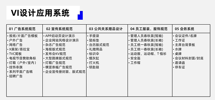 應(yīng)用系統(tǒng)包含:辦公系統(tǒng)、廣告系統(tǒng)、數(shù)字媒體系統(tǒng)等,系統(tǒng)化設(shè)計可以幫助品牌統(tǒng)一規(guī)范化落地!
