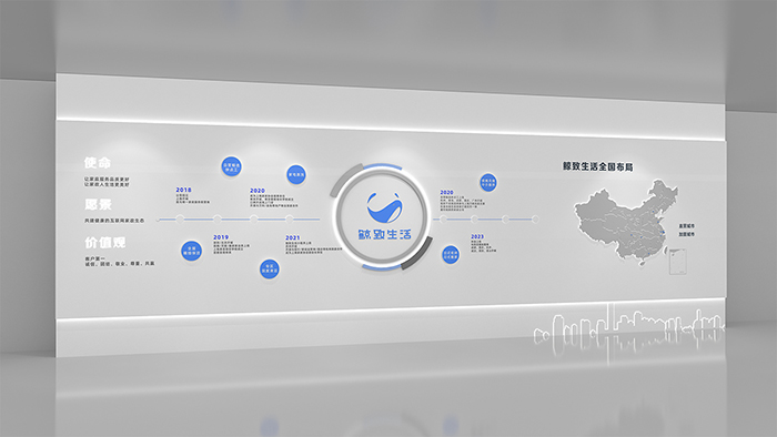 在設(shè)計(jì)文化墻之前,我們需要首先定位企業(yè)文化,并構(gòu)思如何整體布局。同時(shí),將主體與子區(qū)域顯示的內(nèi)容相結(jié)合,完成企業(yè)經(jīng)營理念和服務(wù)理念的核心內(nèi)容,同時(shí)色彩與照明與文化墻巧妙融合。